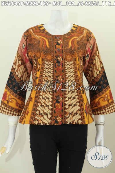 Batik Blus Solo Keren Motif Dan Warna Elegan Cocok Buat Kerja Kantoran, Pakaian Batik Tanpa Kerah Proses Printing Bikin Penampilan Lebih Istimewa [BLS6045P-M , XXL]