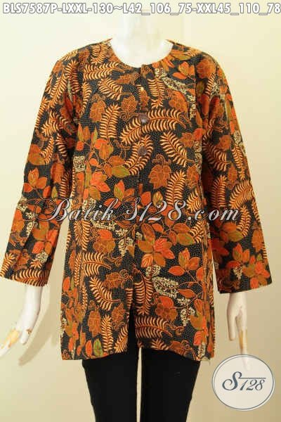 Batik Blus Solo Keren, Pakaian Batik Kerja Tanpa Krah Bahan Halus Proses Printing Motif Unik, Penampilan Lebih Gaya [BLS7587P-L]