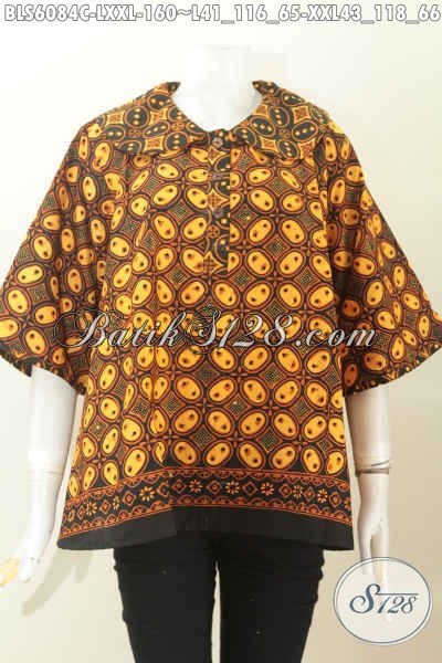Batik Blus Solo Kwalitas Bagus Bahan Adem Proses Cap Motif Klasik Desain Kerah Bulat Untuk Tampil Terlihat Istimewa [BLS6084C-L , XXL]