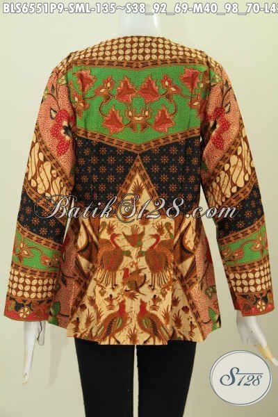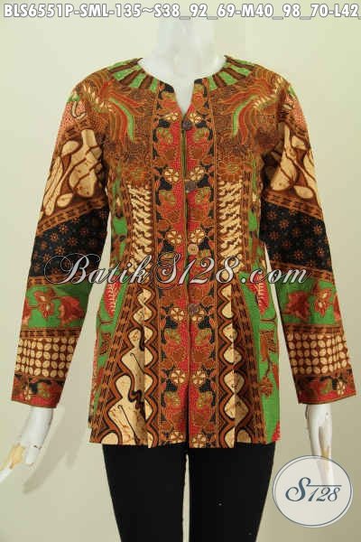 Batik Blus Solo Tanpa Krah, Pakaian Batik Lengan Panjang Halus Motif Bagus Proses Printing Untuk Wanita Muda Dan Dewasa [BLS6551P-S , M , L]