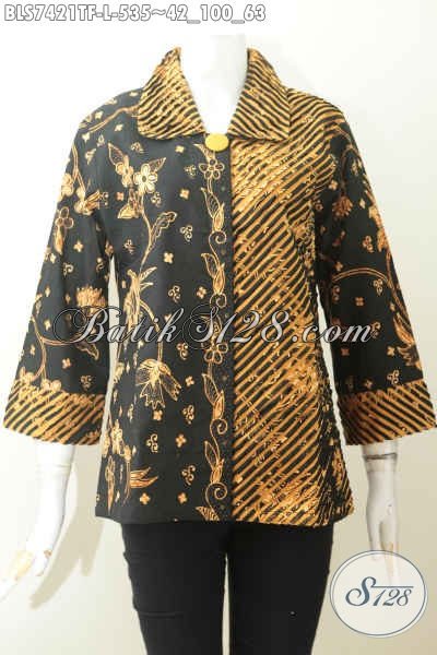 Batik Blus Terkini, Busana Batik Desain Seset, Pakaian Batik Trendy Motif Elegan Proses Tulis Daleman Full Furing 500 Ribuan [BLS7421TF-L]