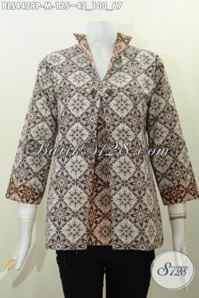 Batik Blus Terkini Dengan Desain Model Jas Berpadu Kombinasi Dua Warna Yang Lebih Modern Dan Berkelas, Pakaian Batik Printing Wanita Karir Untuk Ke Kantor [BLS4429P-M]