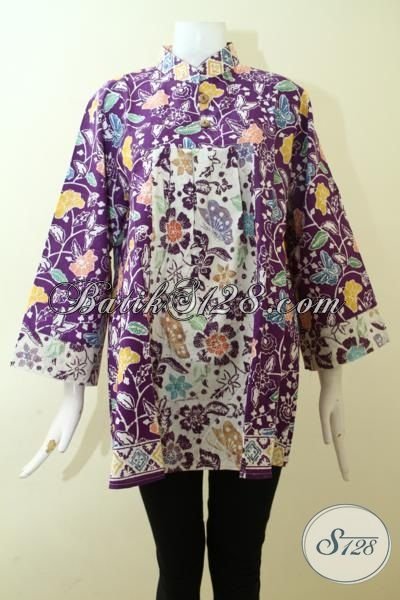 Batik Blus Ukuran Jumbo Khusus Perempuan Berbadan Gemuk, Pakaian Kerja Batik Motif Keren Warna Ungu Nan Mewah Dan Trendy [BLS2548C-XXL]