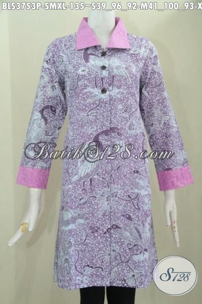 Batik Blus Ungu Model Terbaru Lebih Modis Dan Berkelas, Baju Batik Dan Berbahan Halus Kwalitas Bagus Harga Terjangkau Untuk Perempuan Muda Dan Dewasa [BLS3753P-S]