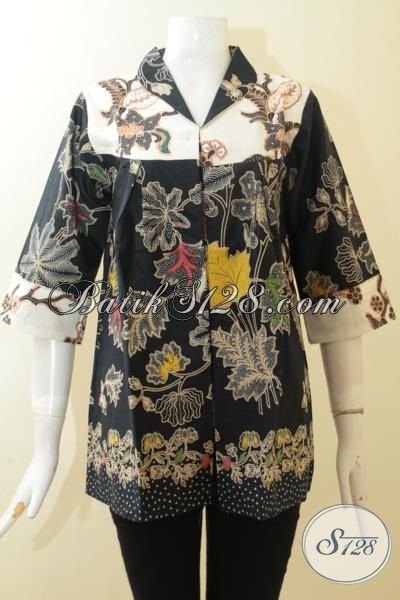 Batik Blus Wanita Dewasa Proses Kombinasi Tulis, Batik Baju Kerja Perempuan Karir Tampil Trendy Dan Berkelas [BLS2973BT-M]