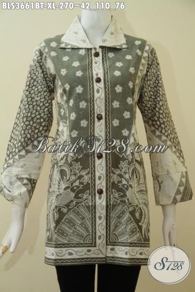 Batik Blus Warna Kalem Proses Kombinasi Tulis, Baju Batik Istimewa Cocok Untuk Kerja Dan Kondangan Kwalitas Premium [BLS3661BT-XL]