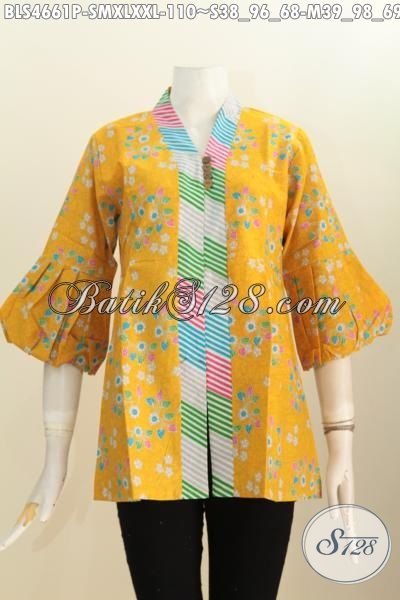 Batik Blus Warna Kuning Model Kerah Langsung Kancing Banyak, Baju Batik Jawa Motif Unik Proses Printing Berbahan Halus Buat Penampilan Tambah Cetar Membahana [BLS4661P-XL]