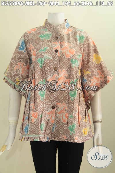 Batik Blus Warna Pastel, Busana Batik Wanita Muda Dan Dewasa Model Kipas Berbahan Katun Halus Motif Keren Proses Cap Harga 160K [BLS5589C-M , XL]