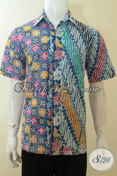 Batik Cap Warna Paling Keren, Hem Batik Kombinasi Dua Motif, Pakaian Batik Halus Harga Murmer [LD3897C-M]