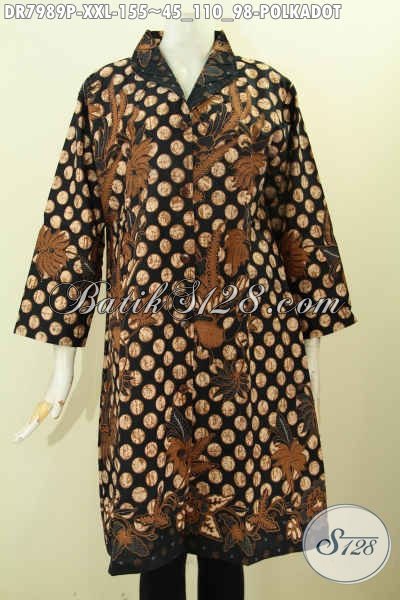 Batik Dress 3L, Busana Batik Terusan Motif Polkadot Desain Krah Langsung Bahan Adem Proses Printing 100 Ribuan [DR7989P-XXL]