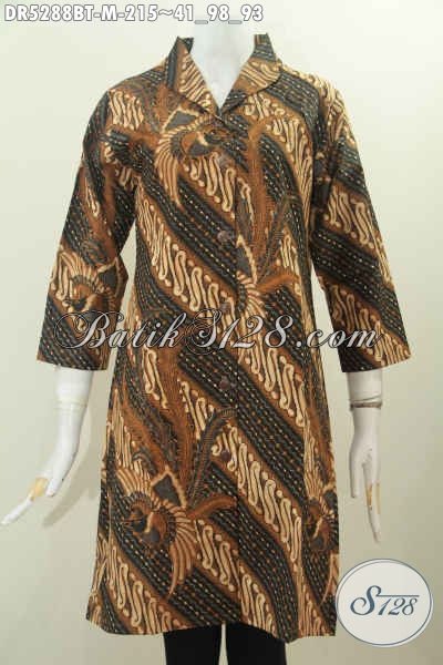 Batik Dress Berkelas Bahan Halus Model Terusan Kerah Langsung Motif Klasik, Baju Batik Kombinasi Tulis Terbaru Istimewa Buat Acara Formal Tampil Cantik Dan Anggun [DR5288BT-M]