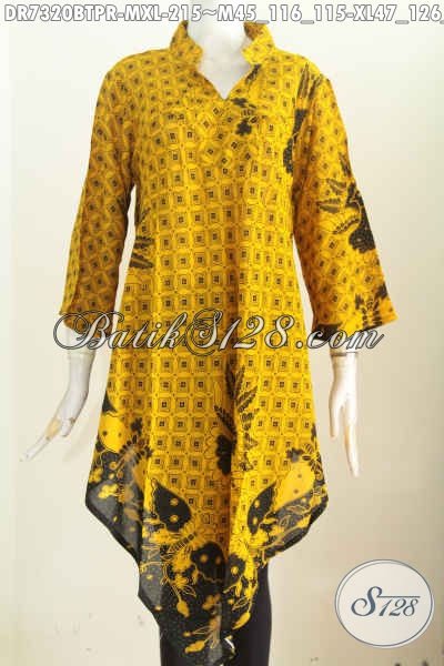 Batik Dress Elegan, Busana Batik Kombinasi Tulis Model Taplak Nan Istimewa Penampilan Lebih Modis Bahan Kain Paris [DR7320BTPR-M , XL]