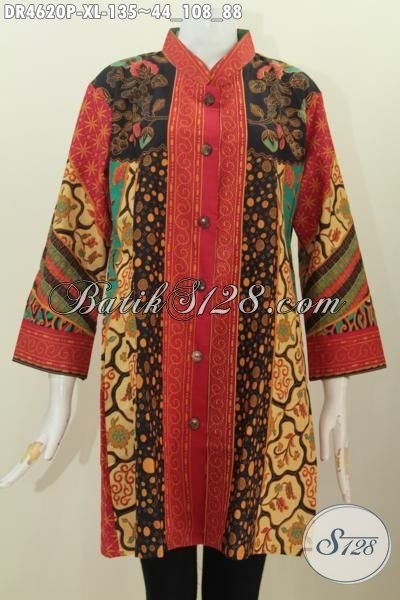 Batik Dress Elegan Desain Modern Untuk Penampilan Lebih Keren, Baju Batik Elegan Motif Klasik Sinaran Proses Printing Wanita Terlihat Elegan [DR4620P-XL]