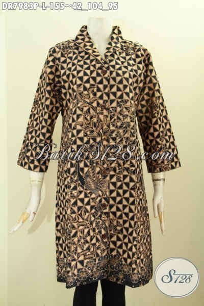 Batik Dress ELegan Motif Klasik, Pakaian Batik Berkelas Motif Bagus Buatan Solo Harga Terjangkau [DR7983P-L]
