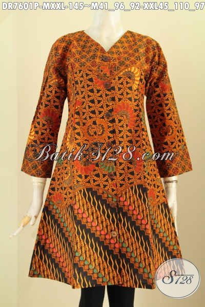 Batik Dress Elegan Motif Klasik Pas Banget Untuk Acara Resmi, Busana Batik Kerah V Proses Printing Kwalitas Bagus Hanya 145K [DR7601P-M , XXL]