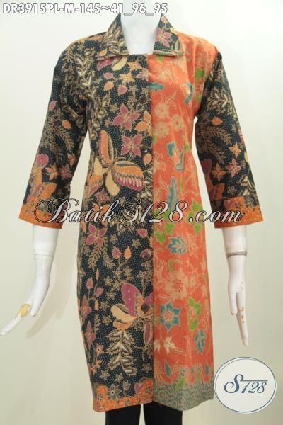 Batik Dress Istimewa Kombinasi Dua Motif, Baju Batik Elegan Kerah Lancip Trend Mode Terbaru Proses Print Bahan Halus Dan Adem, Cocok Buat Kerja [DR3915PL-M]