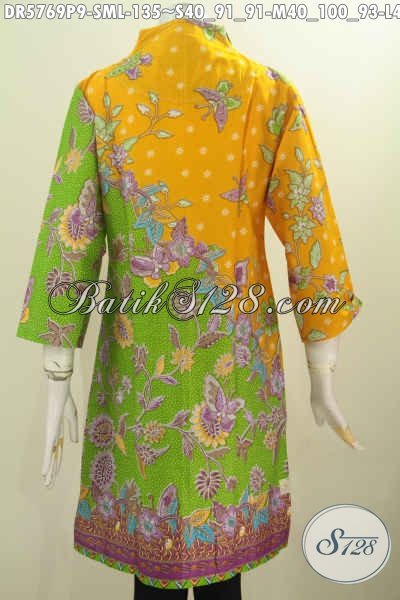 Batik Dress Istimewa, Pakaian Batik Modern Motif Pagi Sore, Busana Batik Modern Proses Printing Model Kerah Langsung Untuk Wanita Tampil Makin Cetar Membahana [DR5769P-L]