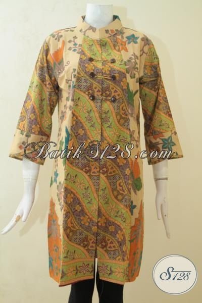 Batik Dress Istimewa Warna Elegan Klasik, Bjau Batik Perempuan Dewasa Masa Kini, Baju Batik Halus Proses Printing Motif Terbar 2015 Makin Exist [DR3164PL-M]