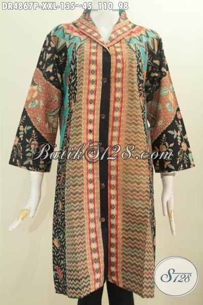 Batik Dress Jumbo 3L, Pakaian Batik Wanita Gemuk Model Kerah Langsung Berbahan Adem Proses Printing Di Jual Online 135K [DR4867P-XXL]
