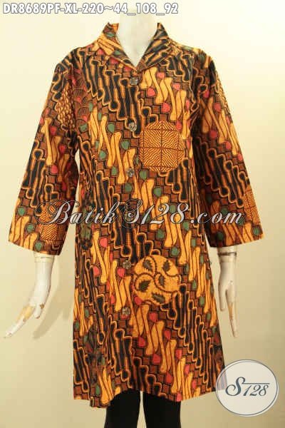 Batik Dress Kerah Langsung Motif Klasik Printing, Busana Batik ELegan Dan Mewah Untuk Wanita Dewasa Daleman Pakai Furing Tricot, Pas Banget Buat Acara Resmi Dan Kondagan [DR8689PF-XL]
