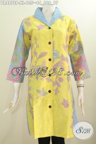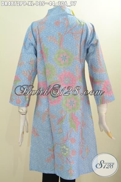 Batik Dress Keren Model Kerah Langsung Warna Pagi Sore, Baju Batik Trendy Wanita Modern Yang Ingin Terlihat Mempesona, Berbahan Halus Proses Printing Harga 100 Ribuan [DR4872P-XL]