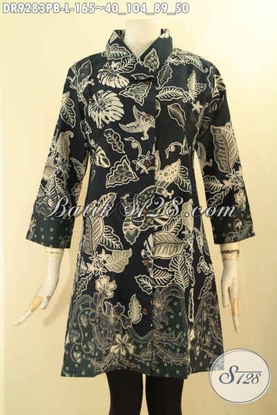Batik Dress Khas Solo Jawa Tengah, Busana Batik Wanita Nan Berkelas Model Lengan 7/8 Kerah Miring Pakaian Kancing Depan, Tampil Cantik Menawan [DR9283PB-L]