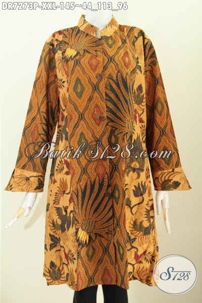 Batik Dress Model 2017 Spesial Untuk Wanita Gemuk, Pakaian Batik Size XXL Bahan Adem Motif Klasik Printing Kombinasi 2 Warna Dan Kerah Shanghai [DR7273P-XXL]