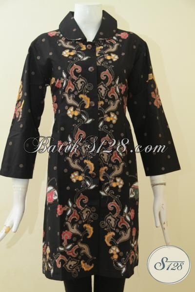 Batik Dress Modern Halus Kwalitas Premium, Baju Batik Dasar Hitam Motif Unik Model Terkini Yang Banyak Di Cari Wanita Karir [DR3630CT-XL]