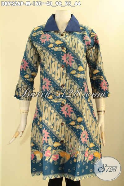 Batik Dress Motif Elegan Klasik Hadir Dengan Desain Kerah Polos Lengan 7/8 Pakai Kancing Depan, Pas Untuk Acara Formal Tampil Berkelas [DR9326P-M]