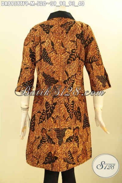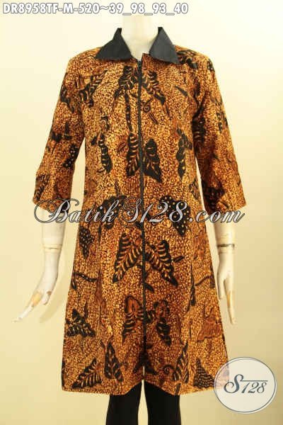 Batik Dress Premium Wanita Muda, Hadir Dengan Motif Klasik Proses Tulis, Busana Batik Cewek Desain Terbaru Dengan Kerah Lengan 3/4 Di Lengkapi Resleting Depan Dan Lapisan Tricot, Cocok Banget Untuk Acara Resmi [DR8958TF-M]