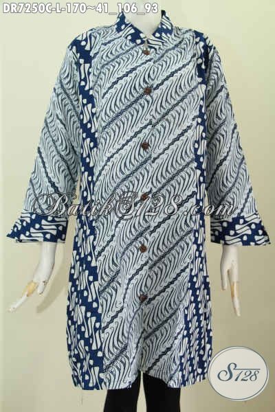 Batik Dress Solo Halus, Pakaian Batik Dress Terkini, Produk Baju Batik Kerja Kerah Shanghai Halus Untuk Penampilan Makin Modis [DR7250C-L]