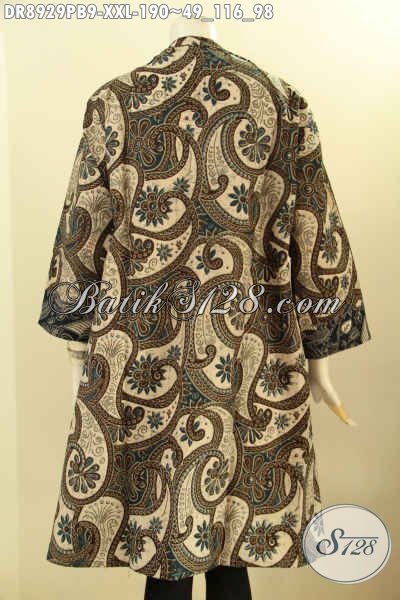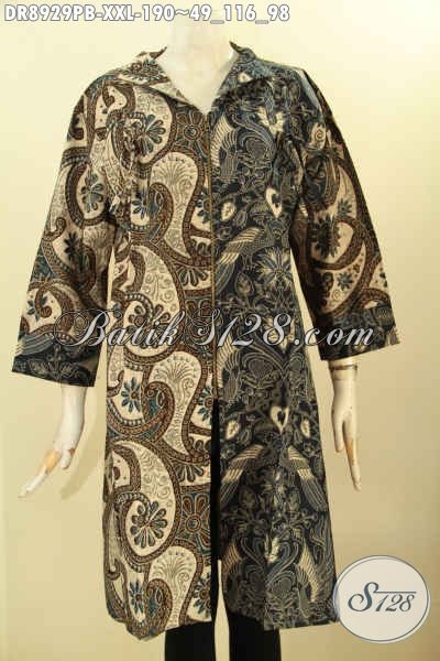Batik Dress Solo Jawa Tengah Halus Desain Mewah Dan Kekinian Yang Membuat Penampilan Cantik Anggun, Dress Batik Lengan 3/4 Kerah Langsung Dengan Motif Kombinasi Pas Banget Untuk Wanita Gemuk Karir Aktif[DR8929PB-XXL]