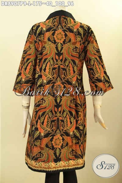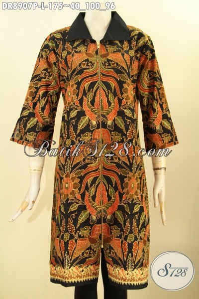 Batik Dress Solo Kekinian Dengan Motif Elegan Klasik, Pakaian Batik Berkelas Lengan 3/4 Bahan Halus Kerah Kain Polos Dan Di Lengkapi Juga Resleting Depan, Penampilan Lebih Mempesona [DR8907P-L]