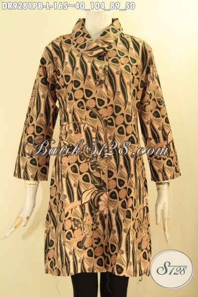 Batik Dress Solo Nan Elegan, Pakaian Batik Untuk Muda Dan Dewasa Tampil Cantik Berkelas Motif Klasik Jenis Printing Cabut Model Kekinian [DR9281PB-L]