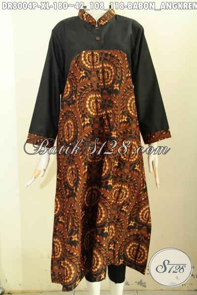 Batik Dress Solo Panjang Elegan Motif Lawasan Babon Angkrem, Pakaian Batik Kancing Depan Proses Printing Hanya 180 Ribu [DR8004P-XL]