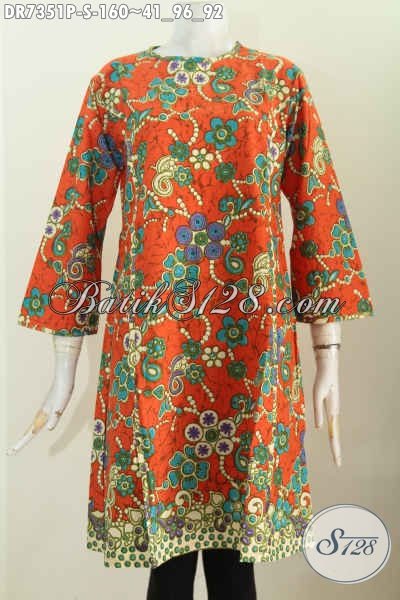 Batik Dress Trendy Tanpa Krah, Busana Batik Solo Model Resleting Belekang Motif Unik Harga 160K [DR7351P-S]