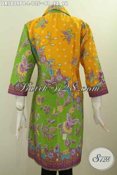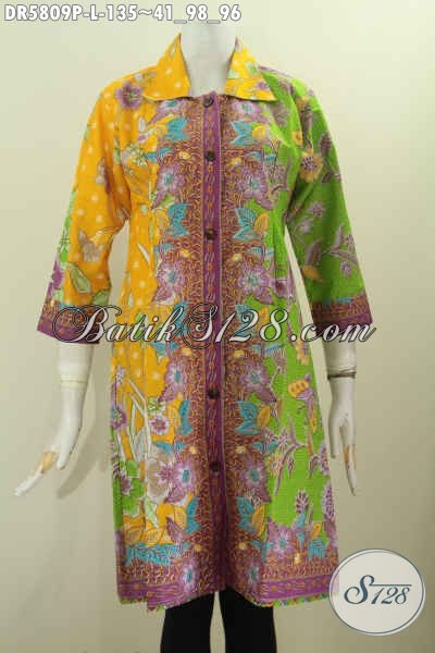 Batik Dress Wanita Dewasa, Baju Batik Pagi Sore Dengan Kombinasi Warna Dan Motif Mewah Proses Printing Untuk Tampil Berkelas Dan Modis [DR5809P-L]
