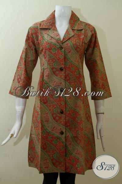 Batik Dress Wanita Muda Masa Kini Tampil Anggun Dan Modis, Pakaian Batik Kerja Perempuan Pekerja Kantoran [DR2513P-M]