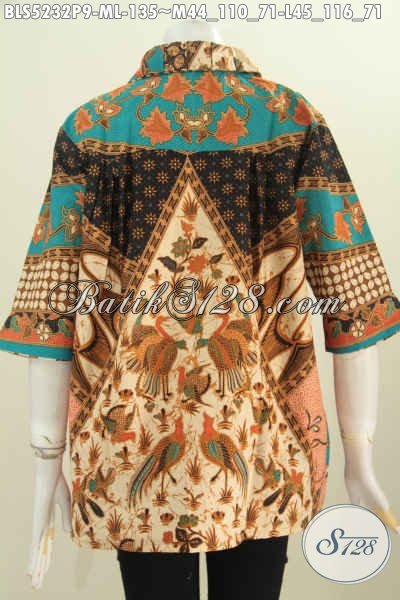 Batik Elegan, Blus Batik Keren Kerah Flui Bulat, Pakaian Batik Halus Motif Sinaran Proses Printing Untuk Seragam Kerja [BLS5232P-M , L]