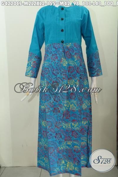 Batik Gamis Biru Model Terbaru Dengan Motif Unik Proses Cap Smoke, Produk Abaya Batik Terkini Modis Buat Hangouts Dan Acara Pesta [G4220CS-XL]
