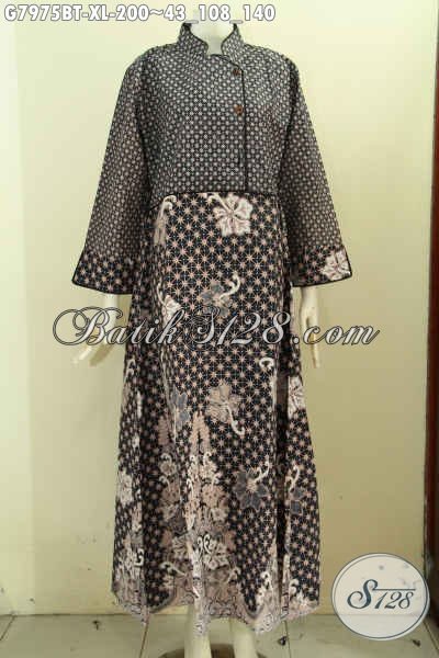 Batik Gamis Elegan, Pakaian Batik Halus Long Dress Istimewa Krah Shanghai Resleting Belakang Modis Trend Masa Kini [G7975BT-XL]