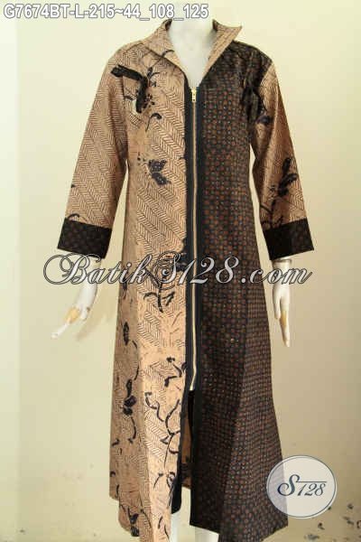 Batik Gamis Long Dress Wanita Muda Dan Dewasa, Busana Batik Abaya 2017 Model Resleting Depan Motif Klasik Kombinasi Tulis Hanya 200 Ribuan [G7674BT-L]
