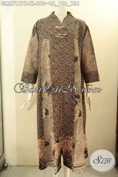 Batik Gamis Wanita Dewasa Size XL, Pakaian Batik Abaya Model Kancing Depan Dengan Motif Bagus Nan Elegan Proses Printing Cabut, Cocok Buat Acara Resmi [GM8717PB-XL]