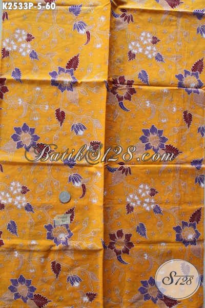 Batik Halus Bahan Baju Kerja, Kain Batik Solo Printing Untuk Busana Santai, Hadir Dengan Warna Kuning Motif Bunga Kwalitas Istimewa [K2533P-200x110cm]