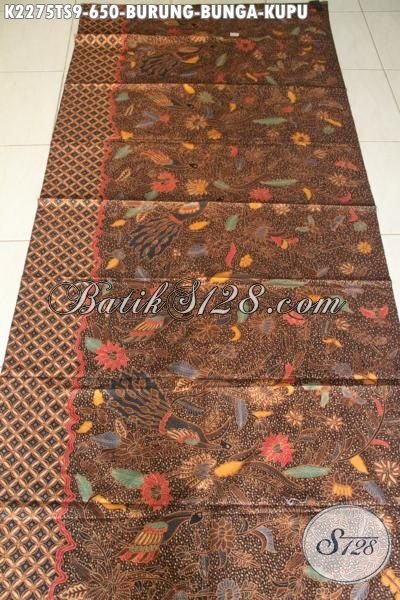 Batik Halus Mewah Buatan Solo Motif Burung Bunga Kupu, Produk Kain Batik Istimewa Proses Tulis Soga Bahan Pakaian Pria Dan Wanita Tampil Makin Mempesona [K2275TS-240×105 cm]