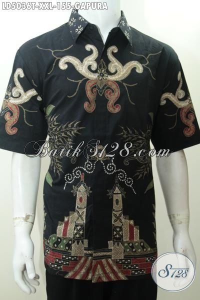 Batik Hem 3L Berbahan Batik Tulis Halus Dasar Hitam Motif Gapura, Busana Batik Elegan Untuk Pria Gemuk Tampil Stylish Dan Berkelas [LD5036T-XXL]