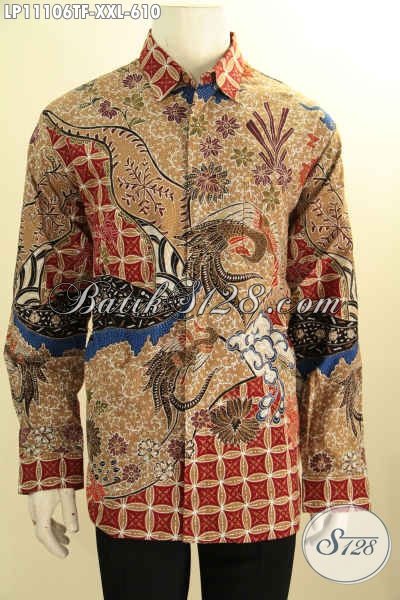 Batik Hem Big Size Lengan Panjang, Busana Batik Solo Asli Pakai Furing Motif Mewah Proses Tulis, Pria Gemuk Tampil Gagah Berwibawa [LP11106TF-XXL]