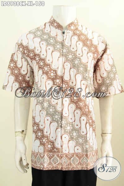 Batik Hem Elegan Lengan Pendek Motif Klasik Proses Cap, Pakaian Batik Solo Kerah Shanghai Halus, Tampil Tampan Dan Gagah [LD8908CK-XL]