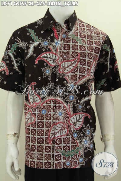 Batik Hem Elegan Mewah Motif Daun Talas, Baju Batik Premium Lengan Pendek Full Furing Buatan Solo Proses Tulis Soga Harga 400 Ribuan [LD7146TSF-XL]