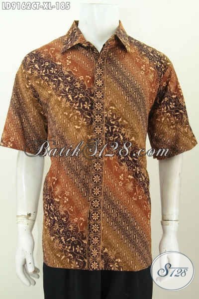 Batik Hem Elegan Pria Dewasa, Baju Batik Kerja Modern Motif Elegan Cap Tulis Model Lengan Pendek 185K [LD9162CT-XL]